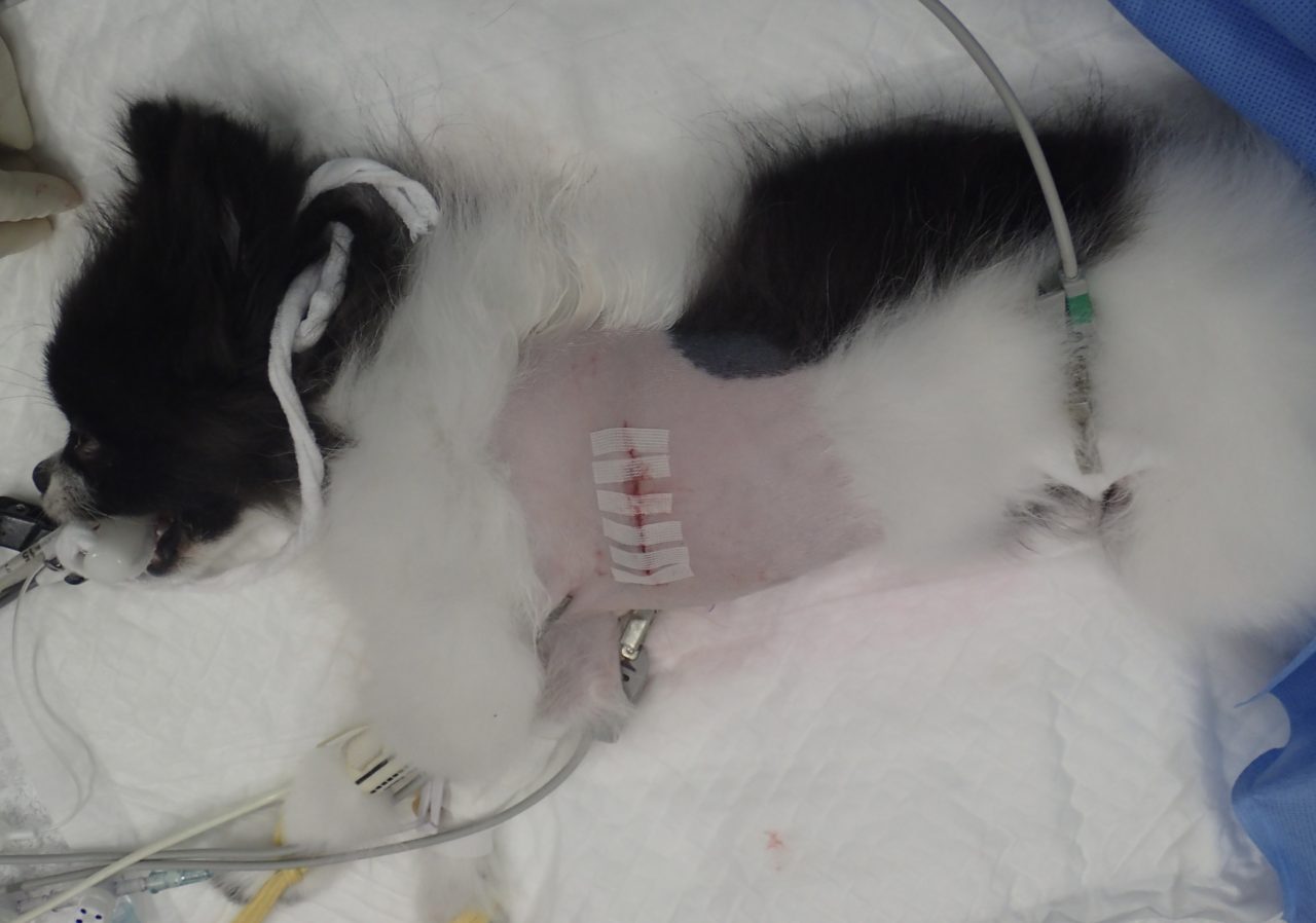 今回は麻酔や肺の保護、術中及び術後の鎮痛管理などは割愛しますが、そこに関してもしっかり対応してあげないと特に肋間を切開しているため鎮痛はとても重要です!術後触っても痛がらないとか、穏やかに過ごしているのを見ると痛みの管理はとても重要だと思っています。 誰でも痛いのは嫌ですからね。