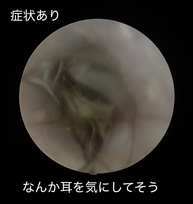 耳垢だけの問題な場合、耳垢栓まで至っても動物たちは症状を全く出さない(正確には症状があるのだけれども気づいてあげる事ができないような症状)事が多いため、特に耳が悪そうとは思われないのです。